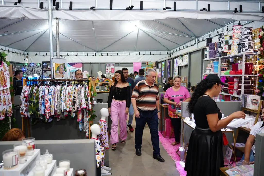 Neste ano, há um rodízio de 90 empreendedoras durante as 9 noites da Expoacre 2023 e as visitas nos estandes são frequentes e a movimentação dentro do espaço é intensa.