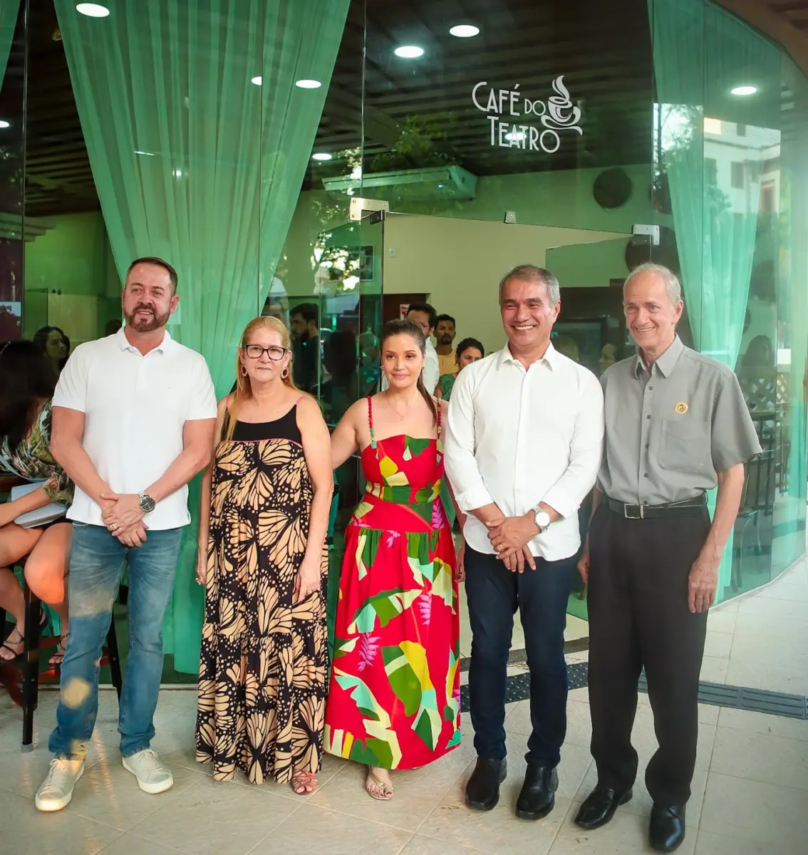 Inês e Claudinha Castro com os secretários de Estado Marcelo Messias (Turismo e Empreendedorismo) e Minoru Kimpara (Cultura), e o historiador e cineasta Adalberto Queiroz