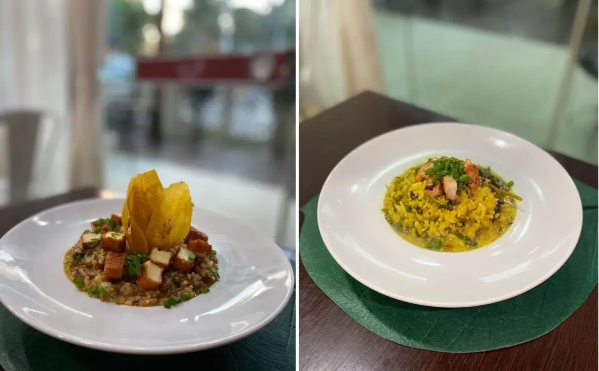 Esses dois pratos foram servidos no coquetel e passam a integrar o cardápio da casa: arroz caldoso de carne seca com queijo coalho e chips de banana frita e arroz acreano, com tucupi e camarão fresco