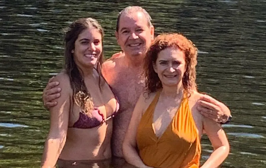 Tião Viana com a filha Catarina e a esposa Marlúcia, relaxando nas águas da cachoeira São Bento