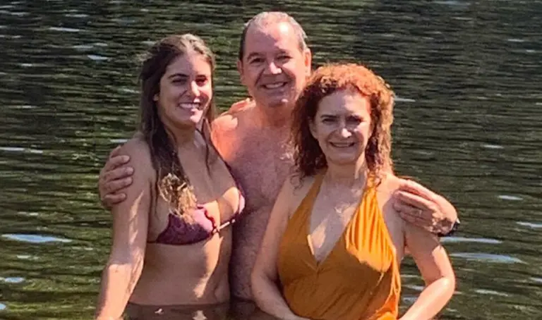 Tião Viana com a filha Catarina e a esposa Marlúcia, relaxando nas águas da cachoeira São Bento