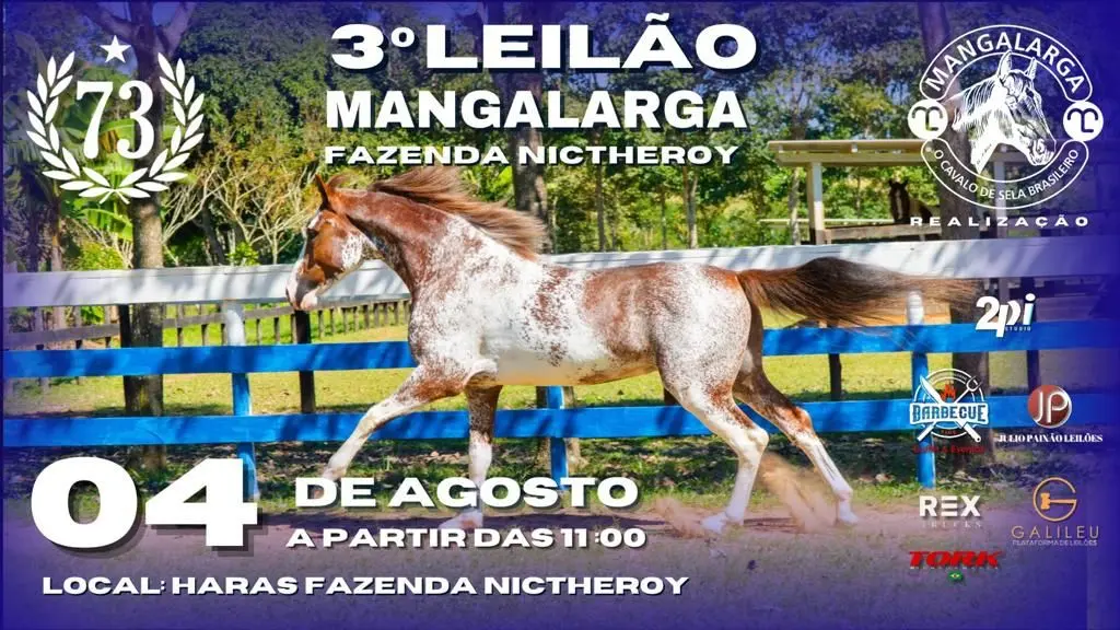 A Fazenda Nictheroy promove o 3º Leilão Mangalarga nesta sexta-feira (4), a partir das 11h no Haras Fazenda Nictheroy. Segundo Flávio Cardoso, um dos organizadores, o leilão é realizado em parceria com a Galileu, uma plataforma de leilões.