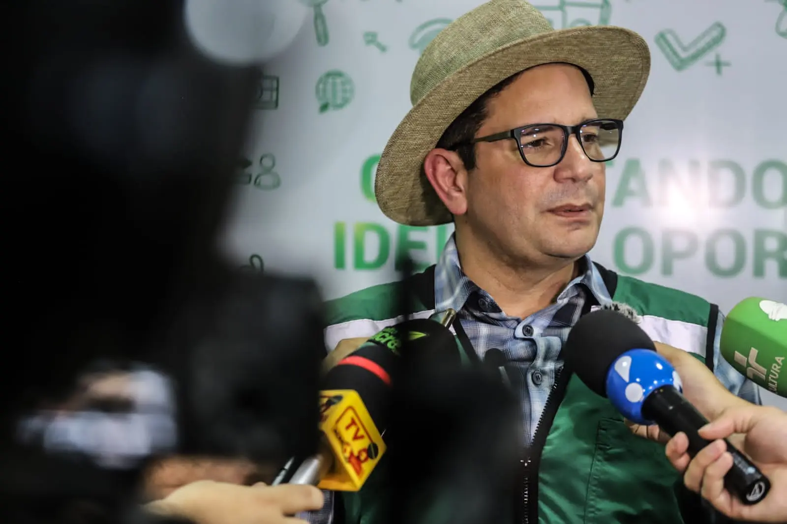 Gladson durante coletiva de imprensa na Expoacre 2023. Foto: Juan Diaz/ContilNet