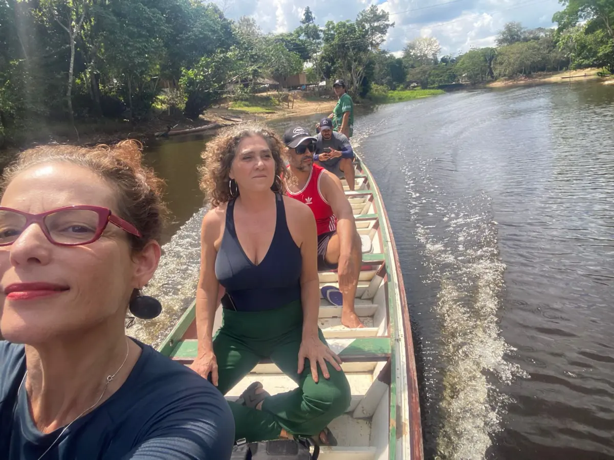 As diretoras, produtoras e roteristas de cinema e televisão, Iafa Britz e Anna Muylaert, nomes expressivos na arte audiovisual brasileira da atualidade, em Cruzeiro do Sul, foram ciceroneadas pelo cineasta Sérgio de Carvalho. Na foto, um passeio pelo Rio Crôa, paraíso no coração da floresta acreana.