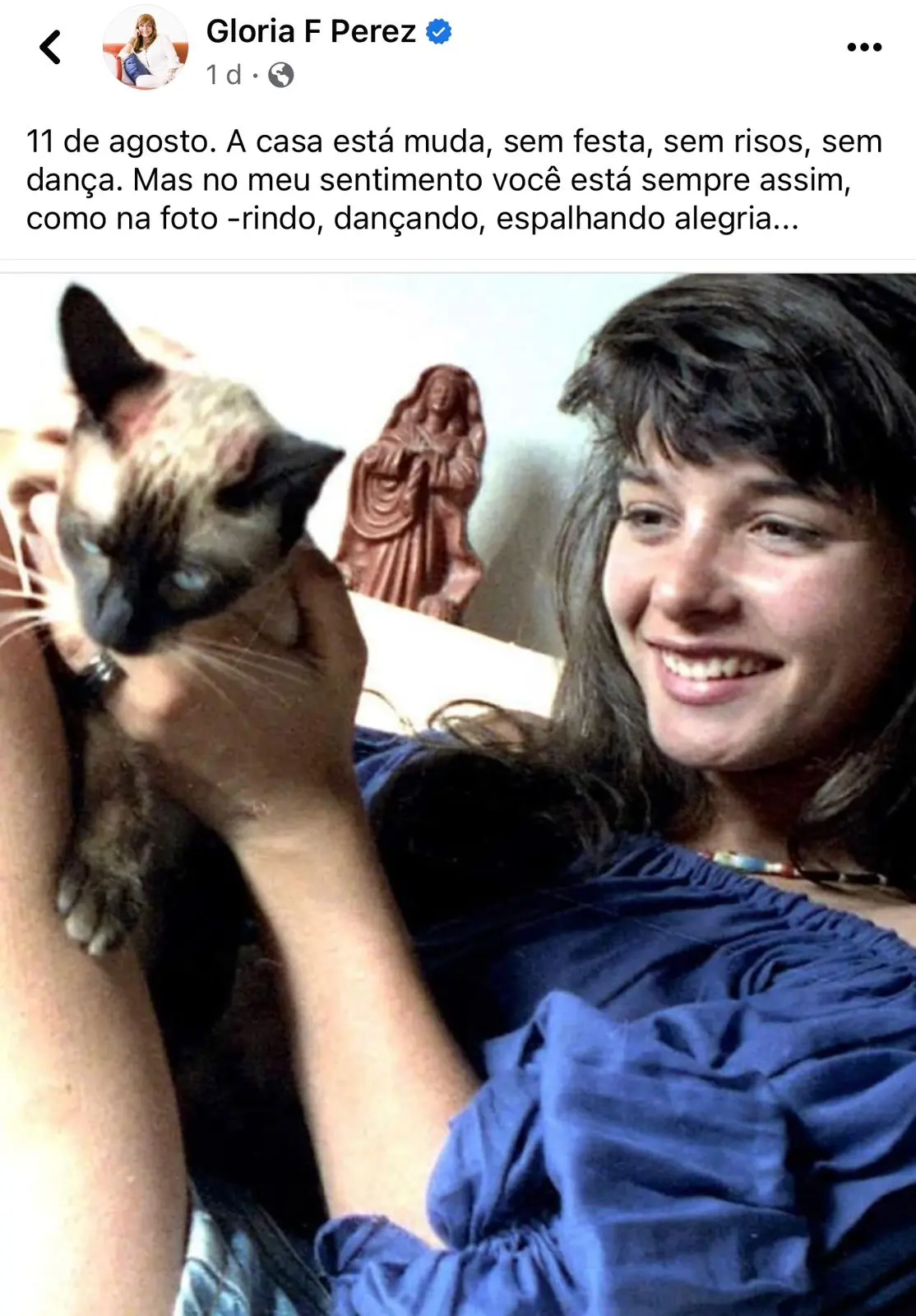 Em um breve texto, simples e emocionante, a acreana lembrou mais um dia 11 de agosto sem a filha. “A casa está muda, sem festa, sem risos, sem dança. Mas no meu sentimento você sempre será assim, como na foto, rindo, dançando e espalhando alegria”, disse a autora.