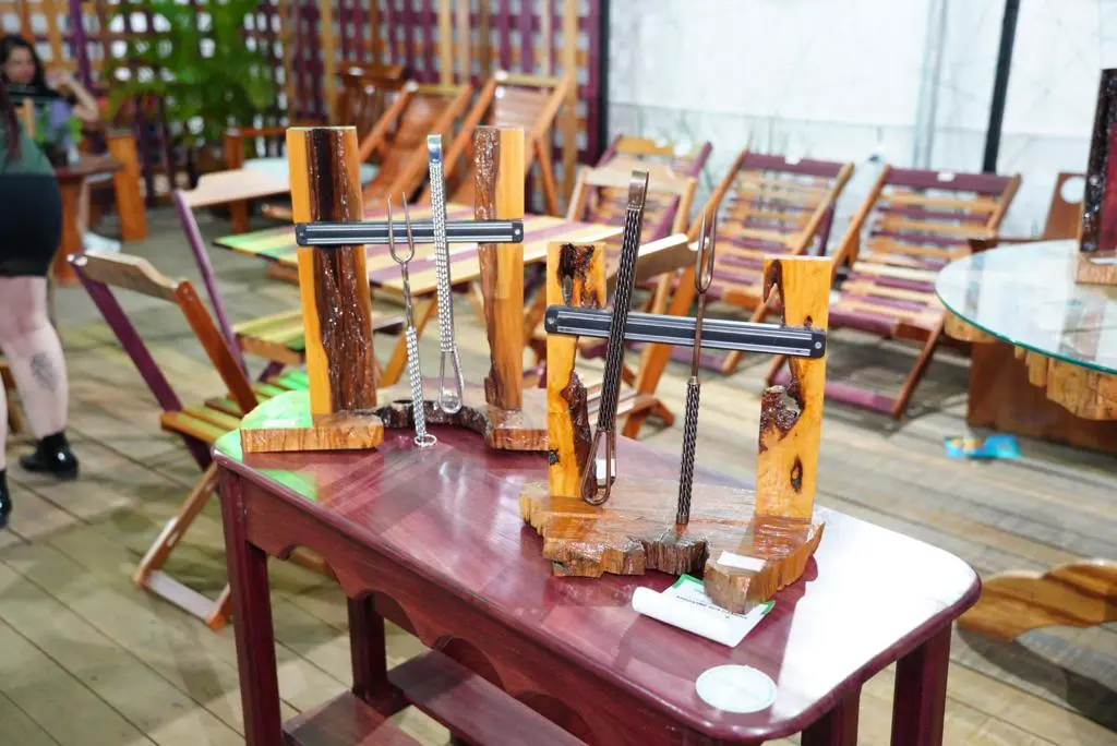 O Instituto de Administração Penitenciária do Acre e a Polícia Penal do Estado, montou um estande na Expoacre 2023 para expor peças em madeira produzidas pelos detentos da Unidade Prisional Estadual. As peças são costumizadas com madeira apreendida em ações de repreensão e doadas ao sistema prisional.