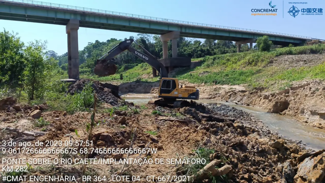 A ponte sobre o Rio Caeté, na BR-364, em Sena Madureira, interior do Acre, precisou ser monitorada pelo DNIT, após apresentar problemas geológicos.