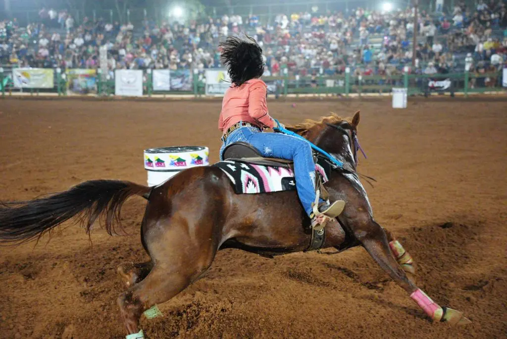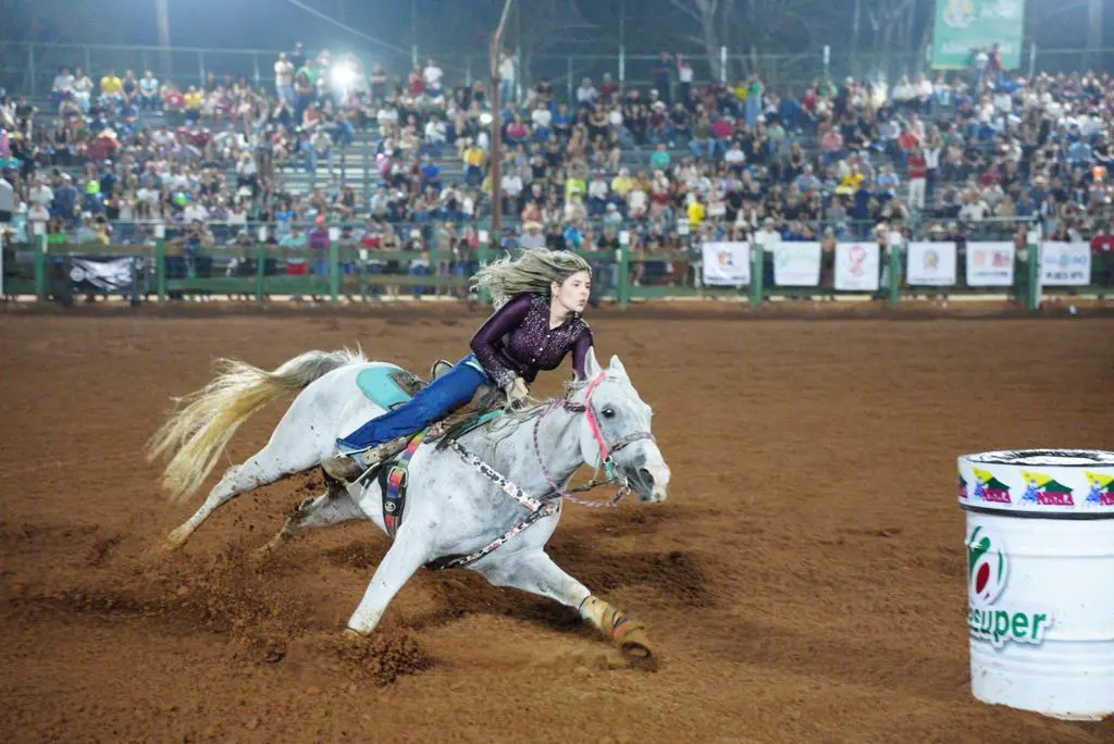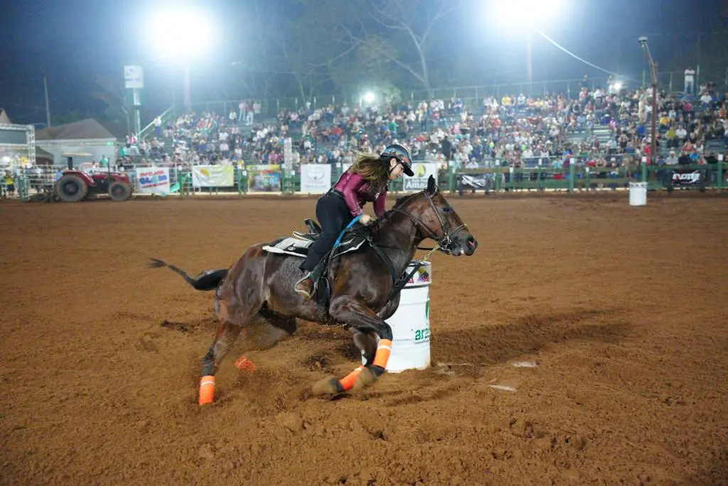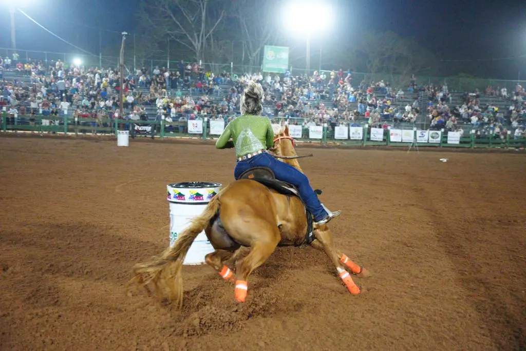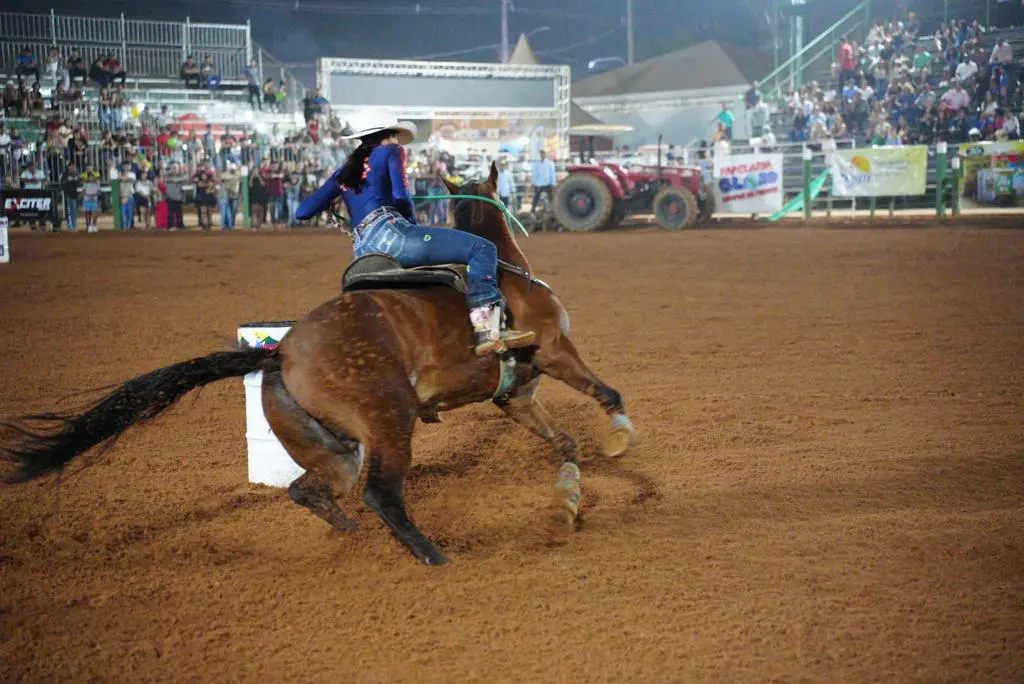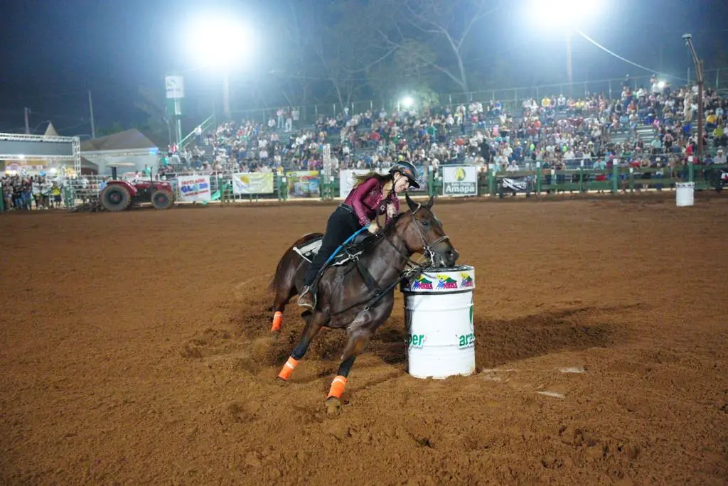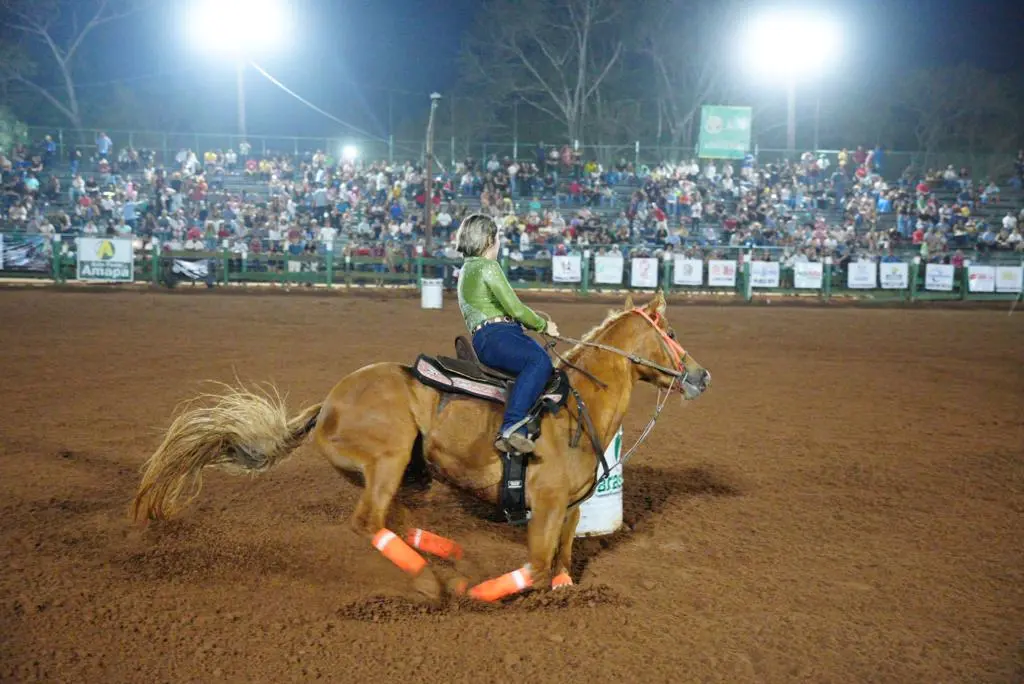 A quarta noite da Expoacre 2023, nesta terça-feira (1), foi marcada pela prova dos três tambores, que aconteceu na arena de esportes do Parque de Exposições Wildy Viana, localizado na região do 2º distrito, em Rio Branco (AC).