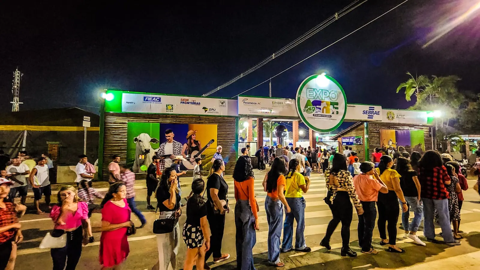 A oitava noite da Expoacre acontece neste sábado (5) e já acumula uma extensa fila de pessoas no portão principal, buscando entrar no parque de exposições.
