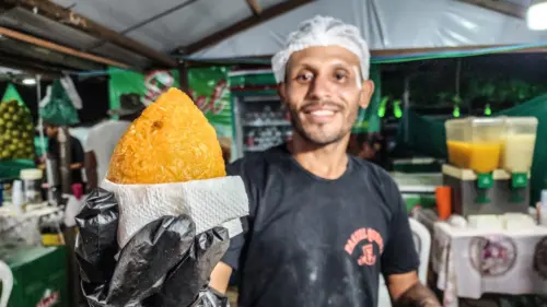 Luís, um dos funcionários desta popular barraca de comida, compartilhou insights sobre a sensação que tem sido o quibe gigante durante este evento culinário. De acordo com ele, esses quitutes têm sido um verdadeiro sucesso, saindo das fritadeiras em intervalos frequentes devido à alta demanda. A qualidade e o sabor excepcionais têm impulsionado a procura incessante pelo prato, levando a equipe a manter uma produção constante para atender às expectativas dos clientes ansiosos.