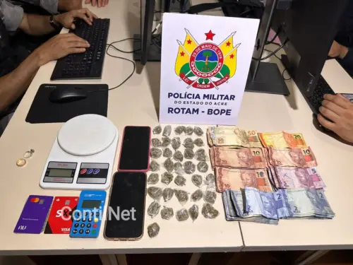 Na noite desta quinta-feira (24), a Rondas Ostensivas Táticas Móvel (Rotam) realizou uma operação que resultou na prisão de um casal acusado de tráfico de drogas em um bar improvisado no bairro Triângulo Novo, região do Segundo Distrito de Rio Branco.