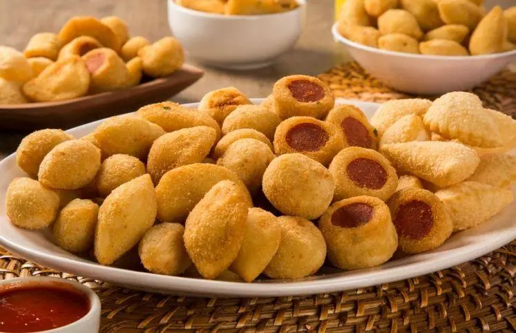 Fornecimento de 750 centos de salgadinhos fritos variados – pastel de carne, coxinha de frango, quibe, canudinho, bolinha de queijo e presunto.