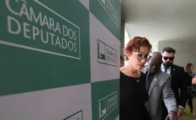 Brasília (DF) 02/08/2023 Deputada Carla Zambelli durente coletiva no salão verde da Câmara dos Deputados. Foto Lula Marques/EBC