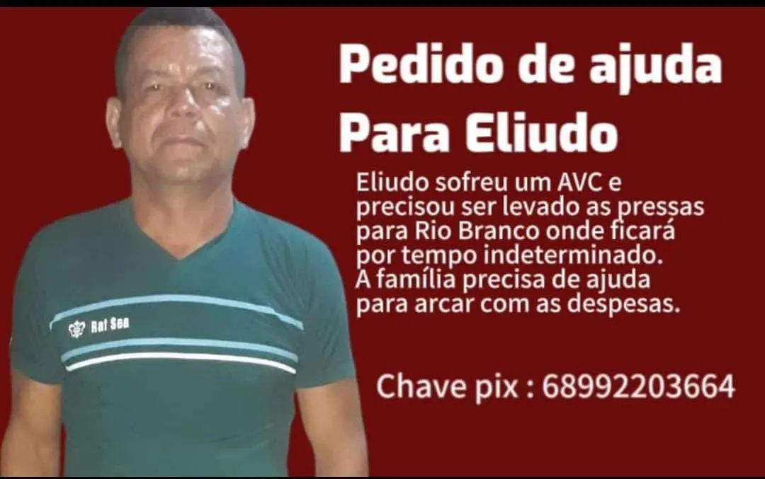 De acordo com informações, Eliudo estava em casa na companhia de um filho quando se dirigiu ao banheiro para tomar banho. Quando estava no banheiro, sofreu o derrame. “Socorremos ele dentro do banheiro porque não conseguia se levantar. Em seguida, o encaminhamos para o hospital de Sena Madureira. Pedimos a todos que continuem orando pela sua recuperação”, comentou um parente da vítima.