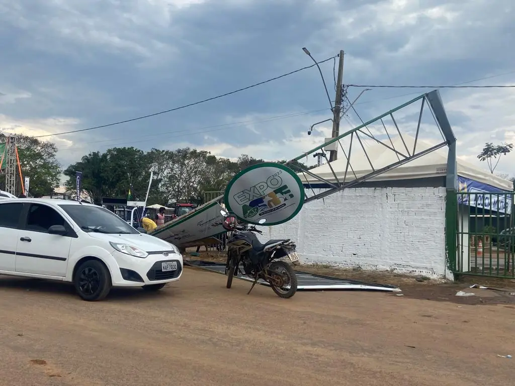A chuva forte também destruiu estandes de alguns expositores, incluindo o do restaurante Tardezinha.