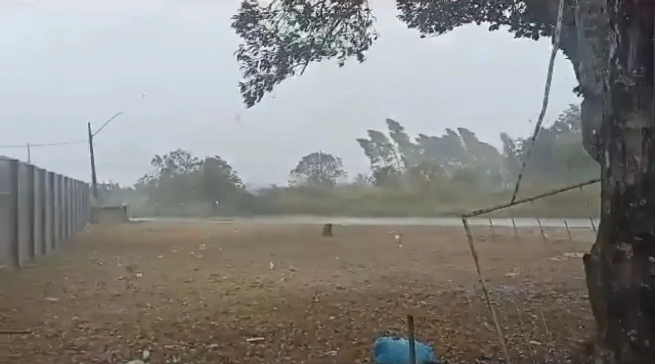 No vídeo, é possível ver ventos fortes e muita chuva, o que não era previsto para essa época do ano, em que o calor e o tempo seco são predominantes no Acre.
