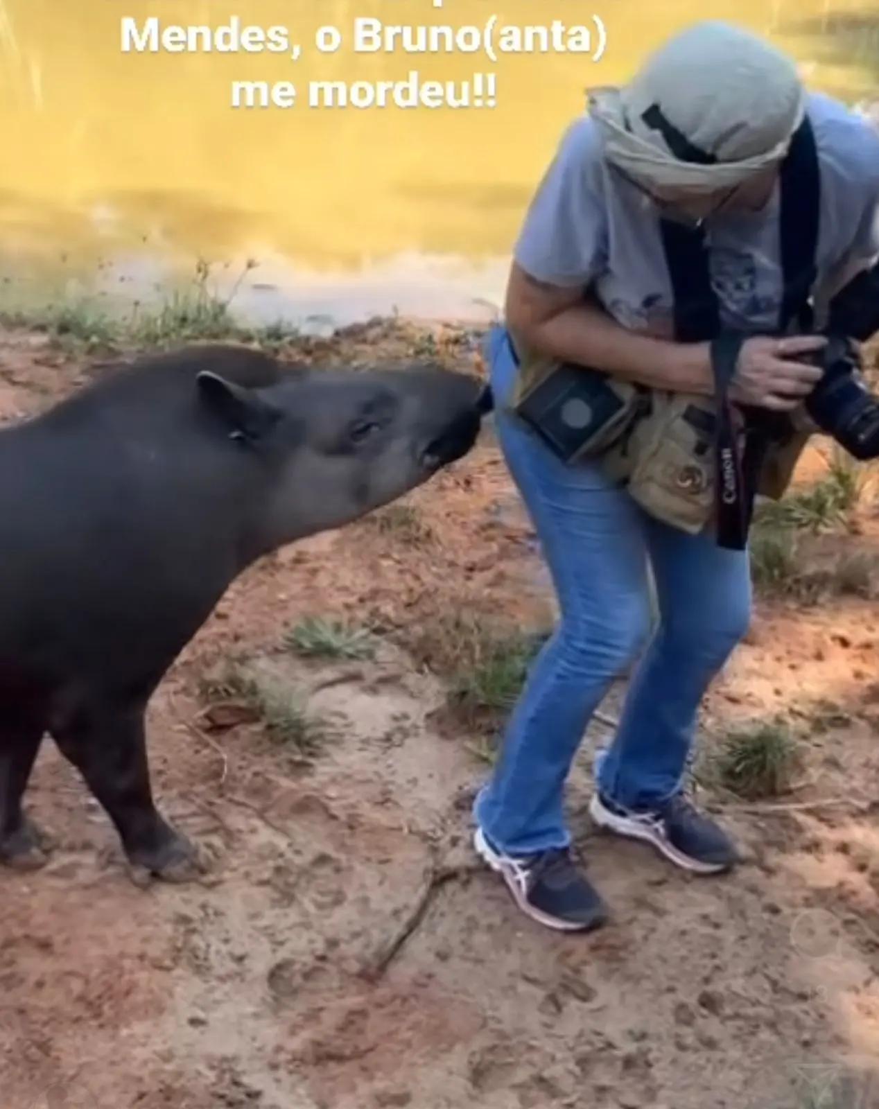 “Me distraí fotografando, ia me baixar para fotografar a Flor [outra anta], que é parceira do Bruno, ganhei uma mordida”.