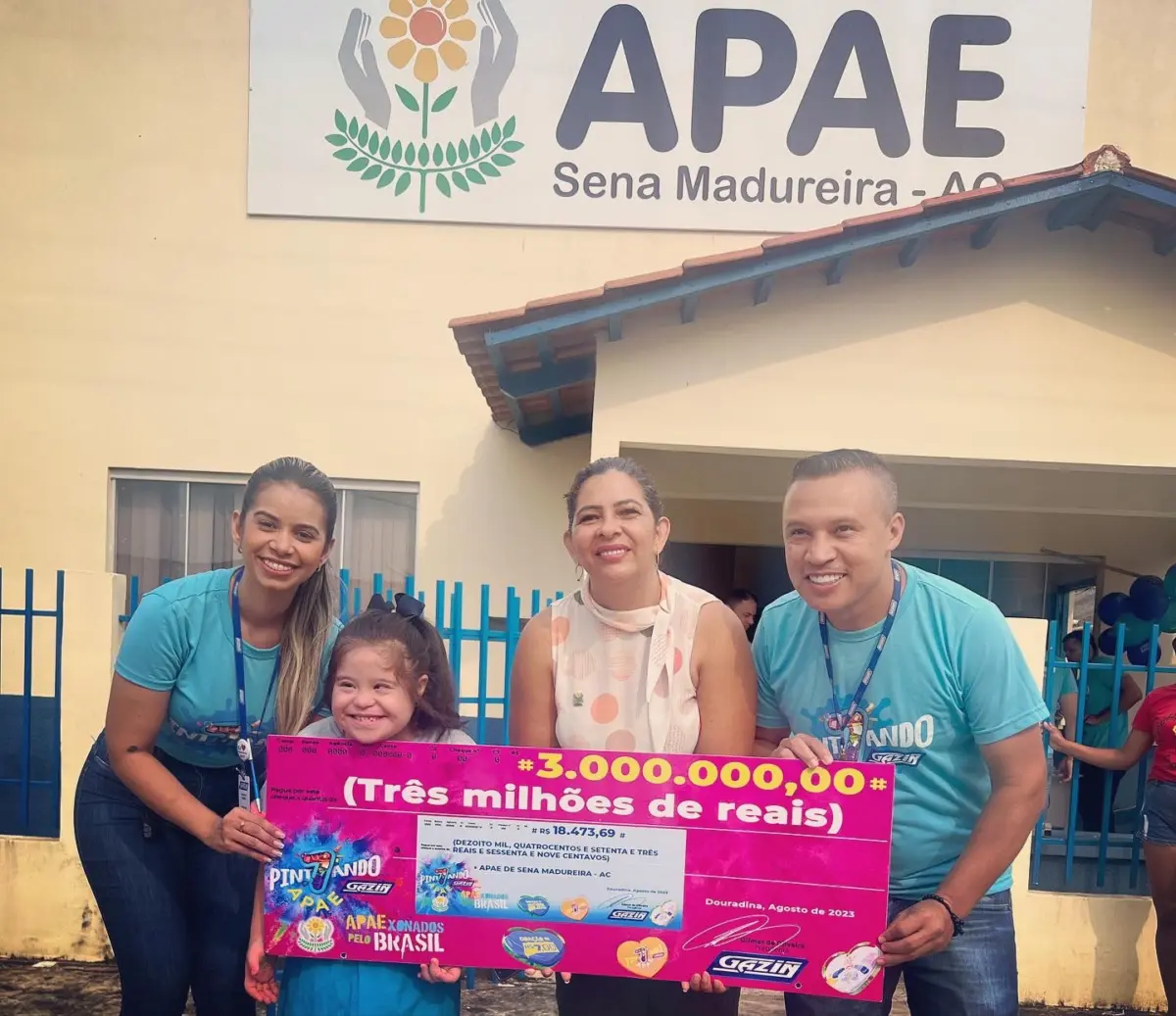 A campanha “pintando o 7”, idealizada no Brasil pela empresa Gazin, contemplou mais uma vez a Associação dos Pais e Amigos dos Excepcionais (APAE), do município de Sena Madureira. Nesta terça-feira (5), o gerente da Gazin de Sena Madureira, Oziel Nascimento, entregou o cheque no valor de 18.473,69 reais nas mãos da coordenadora da APAE na cidade, Chaena Vilaça.