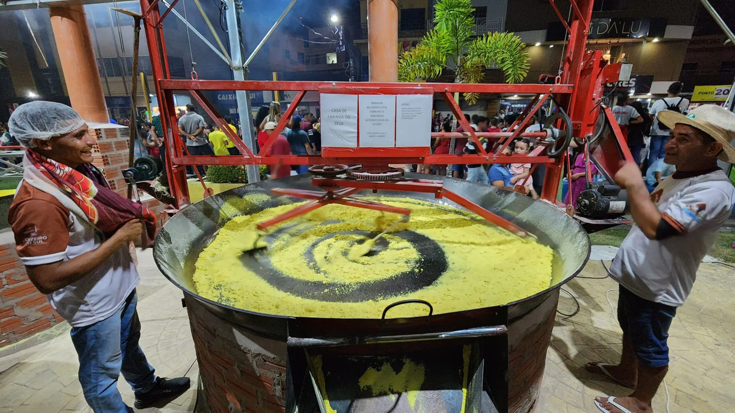 Há 30 anos trabalhando na produção de farinha de mandioca, José Oliveira, está presente no Festival da Farinha de Cruzeiro do Sul, com toda a estrutura utilizada para a produção da farinha e tem atraído a atenção do público que passa no local durante as noites de evento.