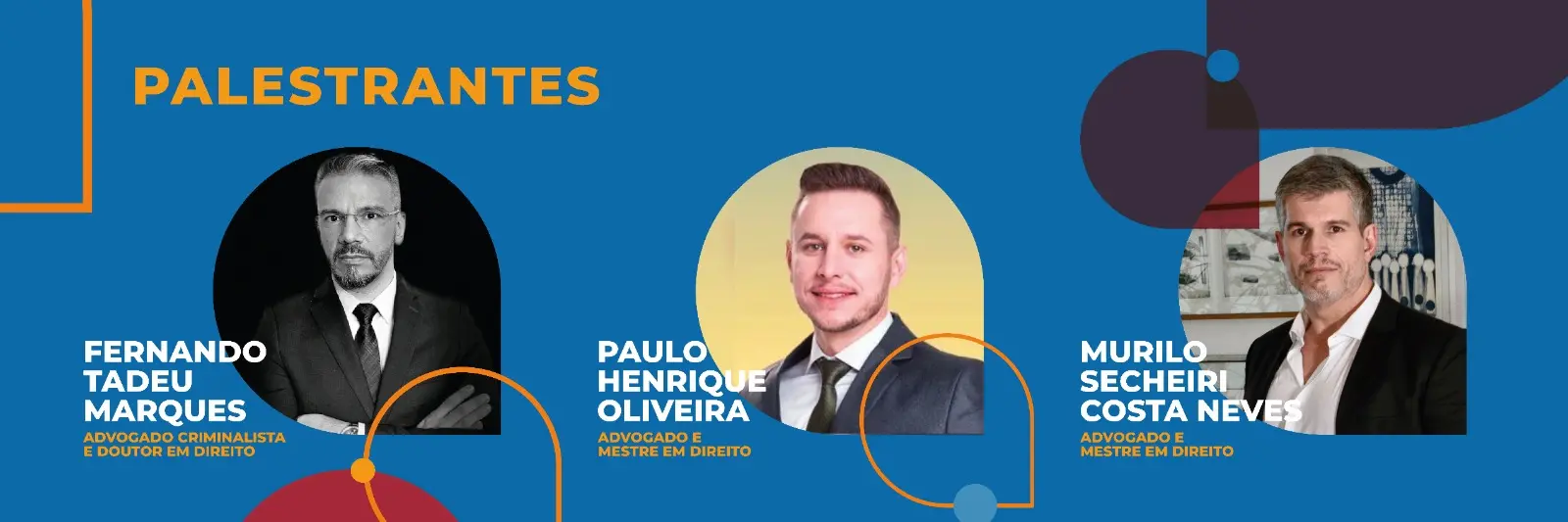 A programação do evento contará com a participação do doutor em Direito e mestre em Direito Penal, o professor e advogado criminalista Fernando Tadeu Marques; do mestre em Direito Civil e, também, professor e advogado Murilo Sechieri Costa Neves, que vai ministrar a palestra “Responsabilidade Civil – Tendências e Desafios”; e do mestre em Direito do Estado e, também, advogado e professor Paulo Henrique Oliveira.