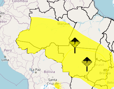 O alerta amarelo é válido até às 10 horas deste sábado (30). Segundo o alerta, há baixo risco de corte de energia elétrica, queda de galhos de árvores, alagamentos e de descargas elétricas.