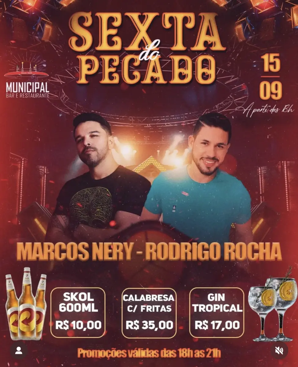 ‘Sexta do Pecado’, acontece nesta sexta-feira (15), no Bar Municipal, em Rio Branco, com Marcos Nery e Rodrigo Rocha.