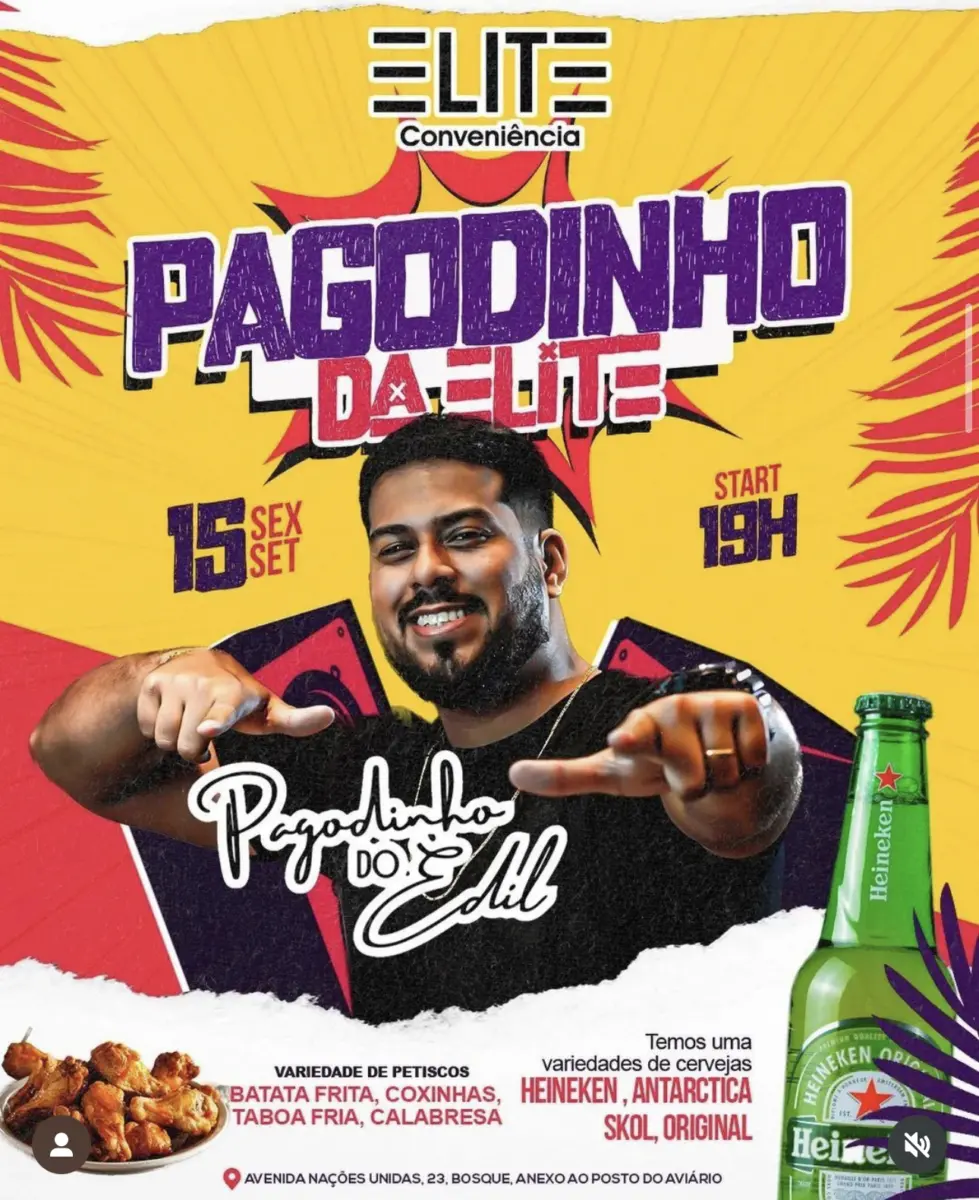 Pagodinho da Elite se apresenta na Elite Conveniência neste sábado (16), às 19h. Com variedade de cervejas e petiscos, o público pode curtir um pagode, na Avenida Nações Unidas, 23, Bosque.