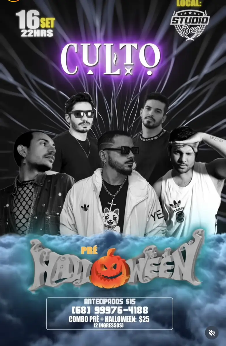 Neste sábado (16), a partir das 22 horas, acontece o ‘Culto’, uma festa pré Halloween. O ingresso antecipado custa R$ 15,00 e o combo pré-Halloween, com 2 ingressos, custa R$ 25,00. O ‘Culto’ acontece no Studio Beer e conta com diversas atrações.