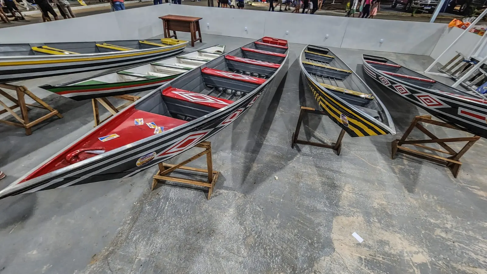 Principal meio de transporte dos municípios isolados do Vale do Juruá, as canoas e os barcos ganharam um espaço exclusivo para exposição durante a ExpoAcre Juruá 2023, em Cruzeiro do Sul.