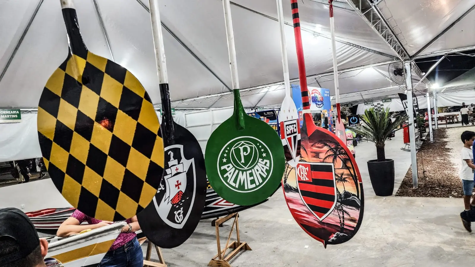 O estande da COOPERBAJOLA reúne criações de 30 sócios diferentes. É através dos barcos que a população ribeirinha consegue percorrer todos os municípios, exportar produções e comprar produtos de necessidade básica.