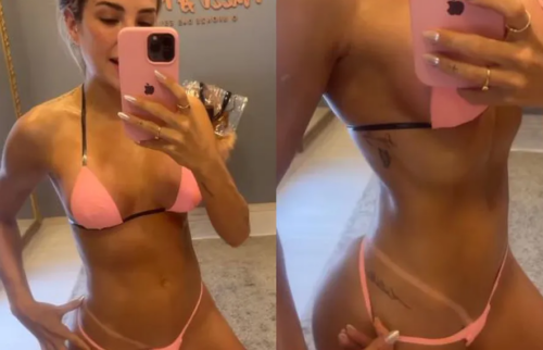 Gabi Martins correu para as redes sociais nesta quinta-feira (14) para mostrar o resultado da sessão de bronzeamento artificial. A cantora fez questão de fazer um vídeo mostrando a marquinha do biquíni para os seguidores.