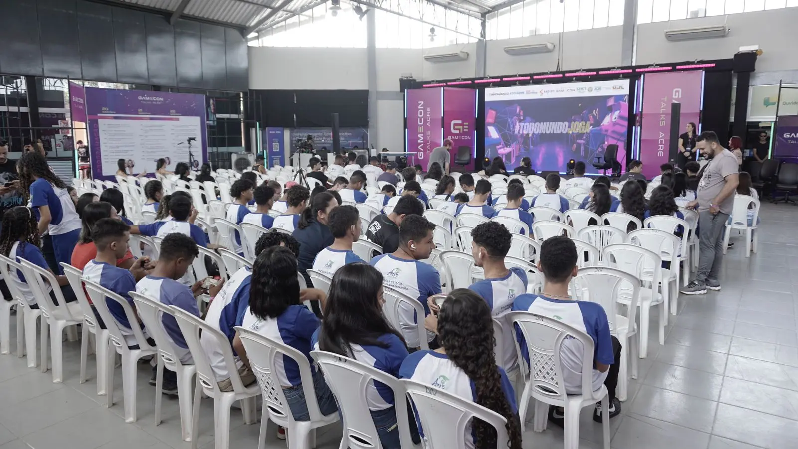 Durante toda a manhã, diversos jovens, adultos, estudantes e profissionais se reuniram para conhecer e descobrir mais sobre os games