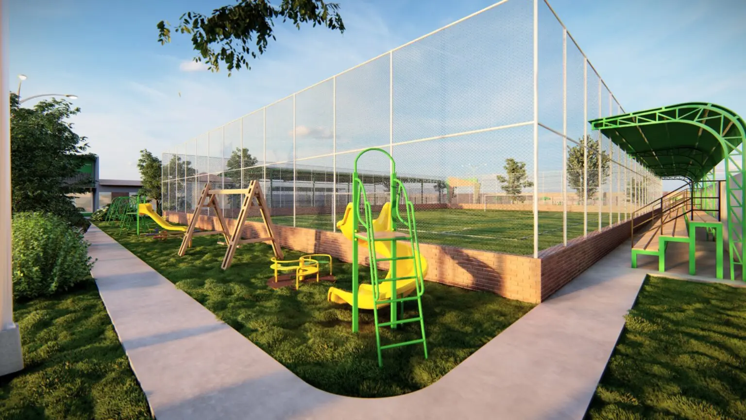 O local também vai ter um parquinho destinado ao lazer das crianças e uma pracinha com mesas de jogos. O projeto prevê ainda a construção de um depósito de materiais esportivos e áreas de cozinha e serviços gerais.