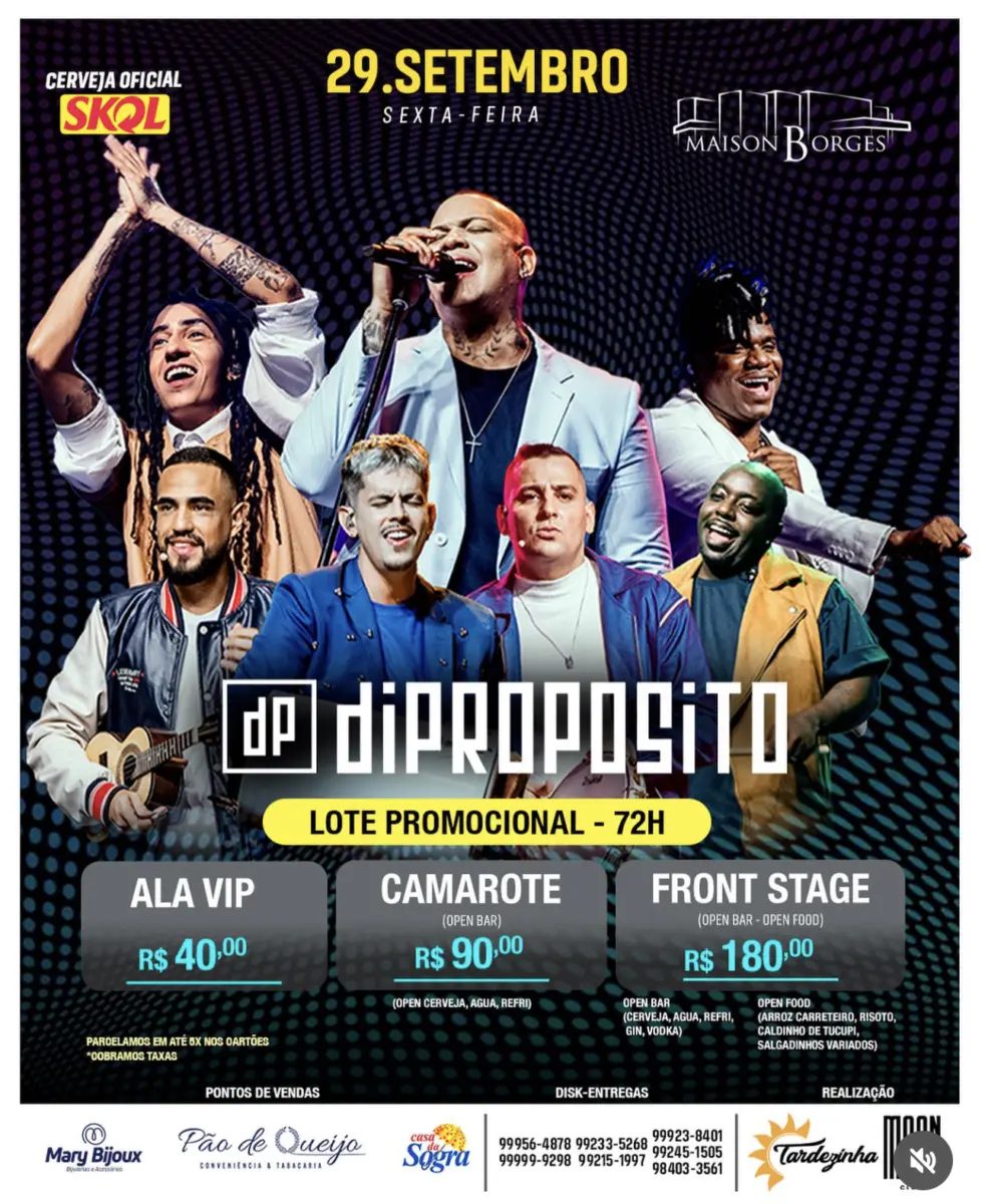 Os admiradores do grupo têm um encontro marcado para o dia 29 de setembro na Maison Borges, renomada casa de eventos em Rio Branco, Acre. Este promete ser um show memorável, onde os ritmos envolventes e a energia contagiante do Di Propósito certamente farão todos dançarem e cantarem ao som de suas canções cativantes.