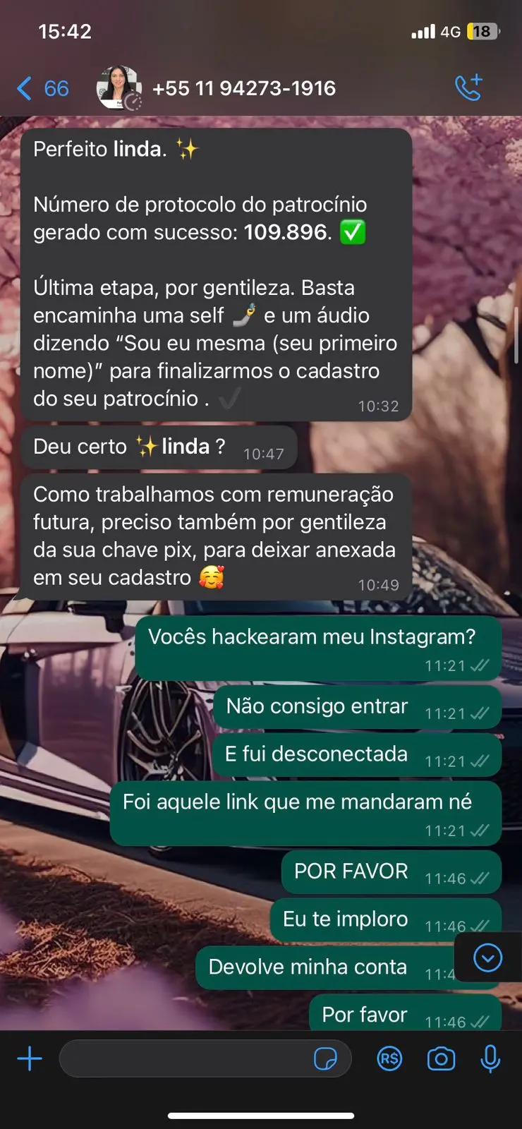 Ela conta que só conseguiu recuperar sua conta após pagar um profissional para fazer o trabalho para ela e que após relatar o caso em suas redes, outras pessoas, do Acre e de Rondônia relataram ter passado pelo mesmo golpe.