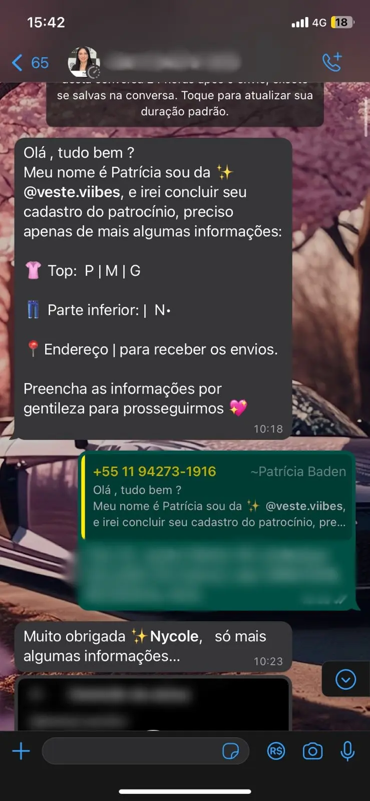 Nycole conta que iniciou no ramo de influenciadora digital a pouco tempo e desde então, algumas lojas a procuraram para fechar parcerias. Uma destas, em seu perfil no Instagram. A influenciadora, então, passou seu contato de WhatsApp para conversar sobre a parceria.