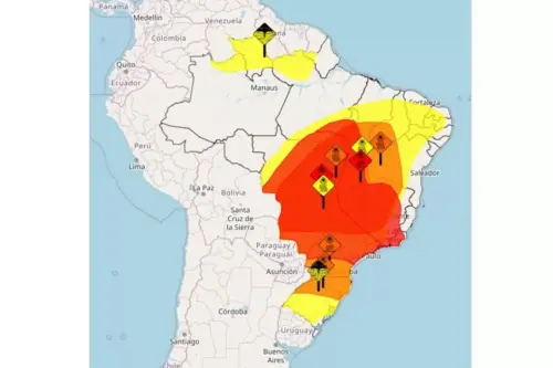 O mapa das cidades afetadas deixa de fora o Acre e boa parte dos estados da Amazônia. Segundo o Inmet, o alerta vermelho indica grande perigo ocasionado pelo aumento das temperaturas.