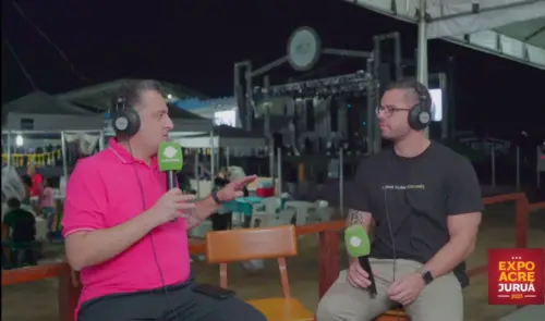 Leonardo Rodrigues foi um dos entrevistados durante a transmissão ContilNet, Sans Filmes e TV Rio Branco, na ExpoAcre Juruá 2023.
