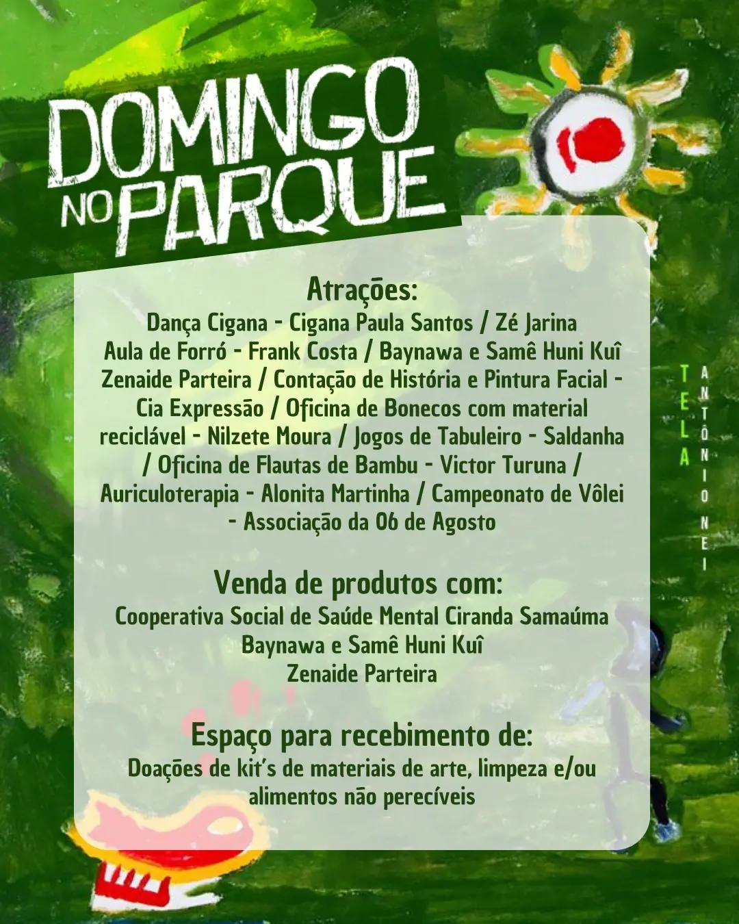 O CECCO Arte de Ser convida a todos para mais uma edição do tradicional Domingo no Parque.