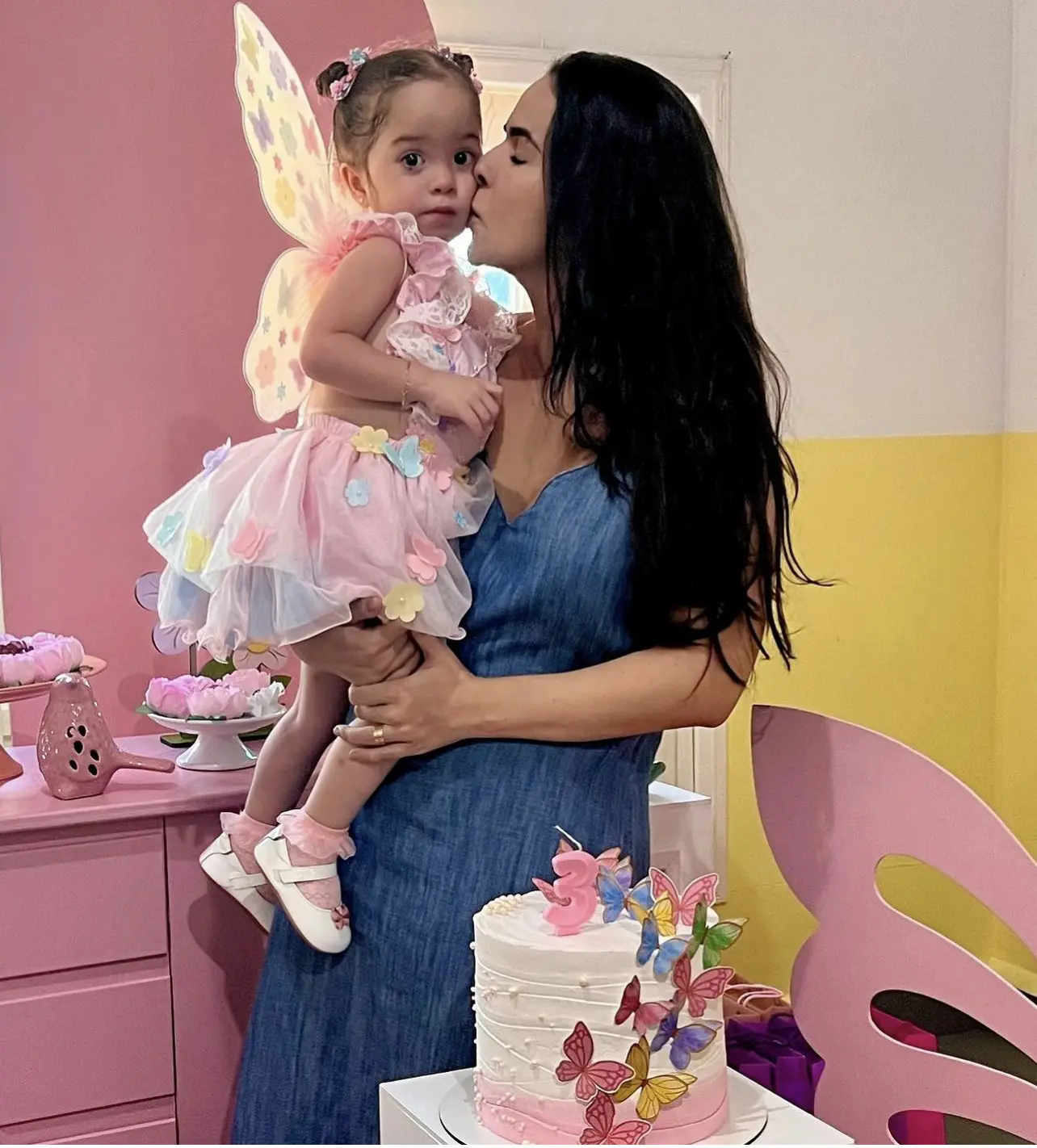 Com o tema borboletas, a pequena Bella Maria comemorou seus 3 aninhos com familiares e coleguinhas do colégio. Na foto, a aniversariante com a mamãe Brunna Haddad.