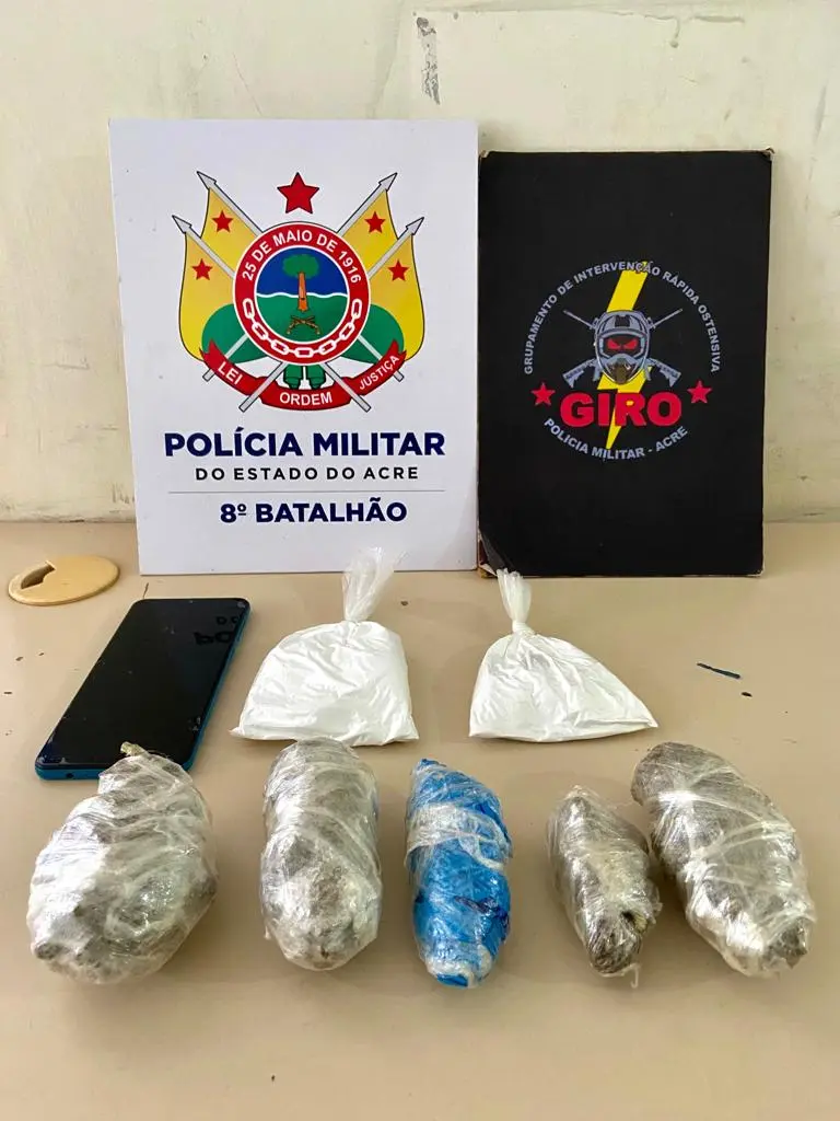 A abordagem se deu na altura do km 2, já chegando em Sena Madureira. Durante minuciosa revista, os policiais apreenderam em seu poder 202 gramas de maconha e 154 gramas de cocaína que seriam comercializadas no vale do Iaco.