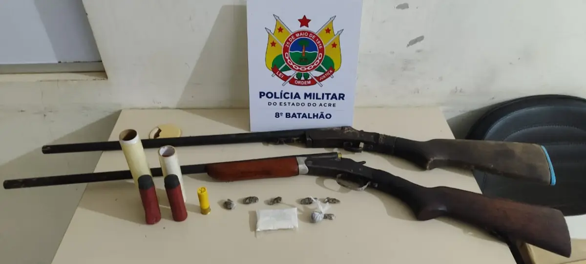 Ao chegar na residência, com a permissão da proprietária, os PMs entraram e encontraram inicialmente uma espingarda calibre 20. Além disso, foram apreendidos também sete papelotes de maconha.