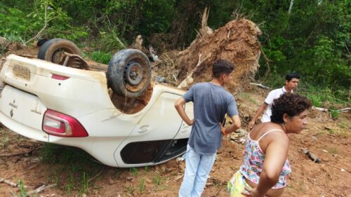 De acordo com informações obtidas pela equipe de reportagem, o motorista do veículo foi identificado como Nataniel Vieira, de 48 anos. Ele seguia em direção a vila do Incra e estava prestes a alcançar a Vila do V quando enfrentou um momento crítico. O pneu traseiro de seu veículo estourou, levando-o a perder o controle do carro, que acabou capotando várias vezes.