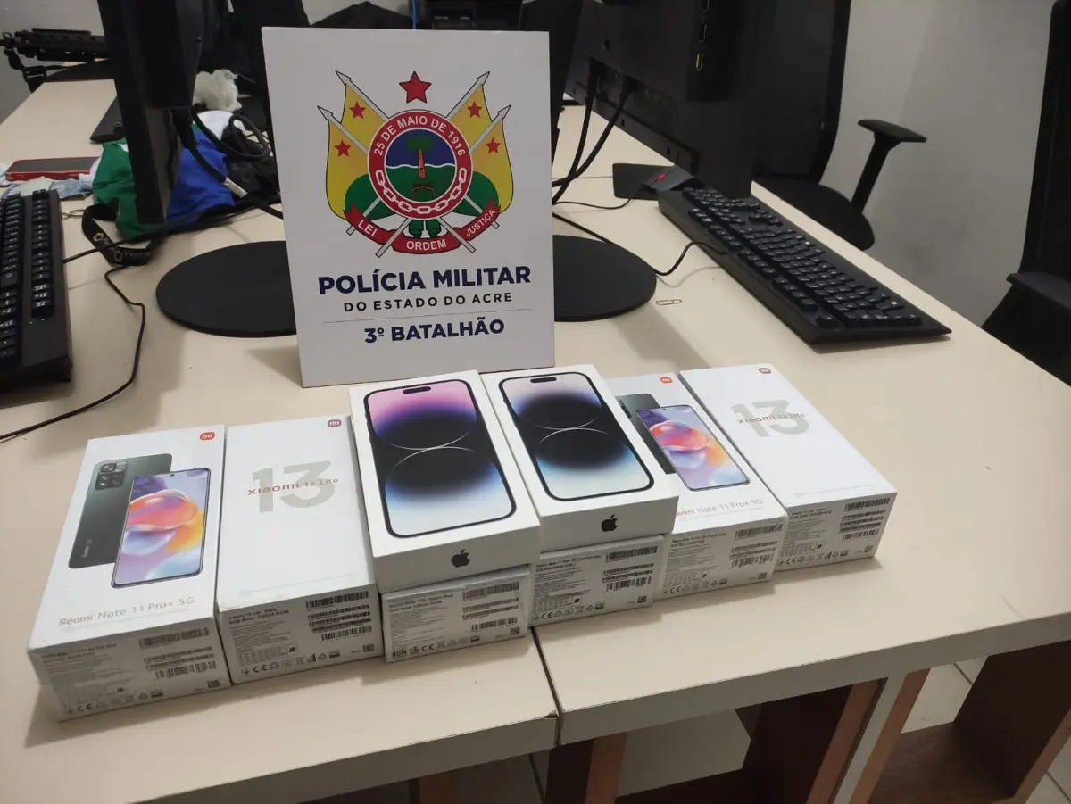 A Polícia Militar recuperou os aparelhos celulares roubados em uma loja no bairro Bosque, em Rio Branco, na terça-feira (12). Os militares receberam as informações do roubo, das características dos envolvidos e de dois veículos usados no crime e iniciaram as buscas.