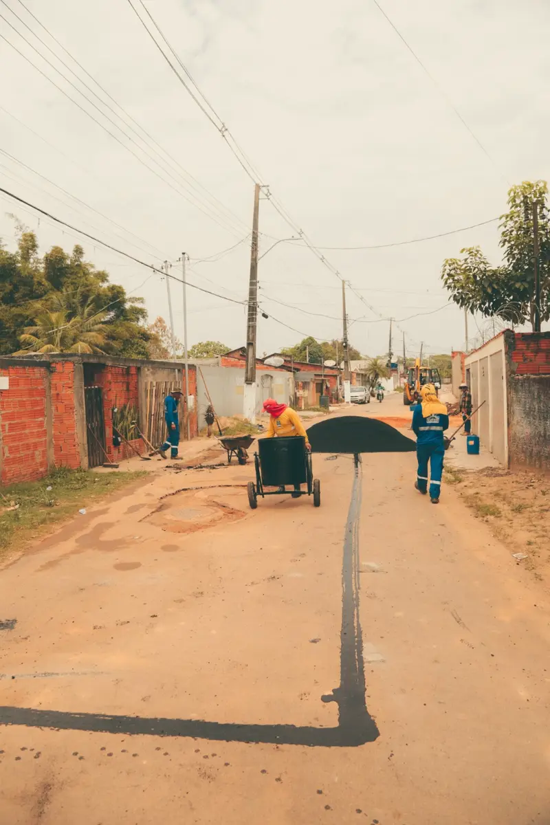 Já na rua do terminal, hoje foi dia de trocar o asfalto comprometido, passar o piche e colocar a camada asfáltica novinha. As três frentes de serviços do bairro trabalham simultaneamente aproveitando todo o período do verão amazônico. Fabrícia Oliveira, que antes chegava em casa com a bicicleta suja de lama, atesta a qualidade do serviço. “Tá ficando bonito, porque em vista do que tava, cheia de buracos, tá bonito”, avalia a moradora.