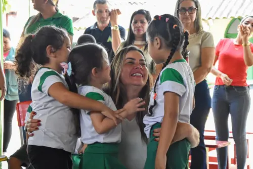 A prefeita Fernanda Hassem participou da atividade de entrega e fala da satisfação em atender tantas crianças.