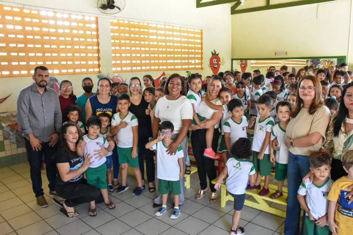 Investindo na Rede básica do ensino infantil no município, a Prefeita Fernanda Hassem acompanhada da Secretária Francisca Oliveira e demais secretários municipais realizou a entrega, nesta quarta-feira, 13, de 248 jogos de mesas e cadeiras para os alunos das séries iniciais, além de armários e brinquedos para as Escolas Vitória Salvatierra, Menino Jesus, Os Pastorinhos e Conci Alves, no quilômetro 26. Beneficiando 900 alunos.