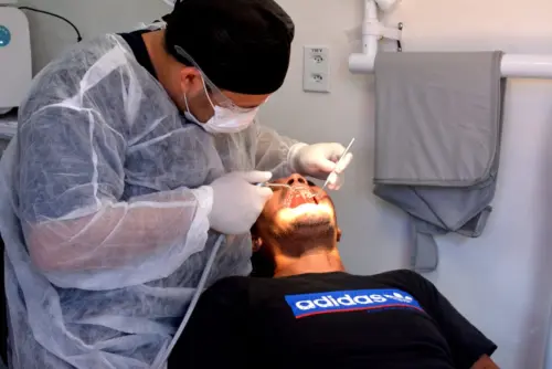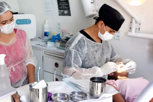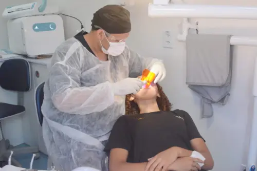 “A gente tem três vans, cada uma com um dentista dentro como um consultório fixo toda completa com todo o material necessário para um dentista atuar. Temos a cadeira, o raio X, o ultrassônico para fazer as raspagens, serviço completo dentro da van. A comunidade está tendo um atendimento de excelência como nunca teve”, explica Nacília Pimentel, responsável técnica pelo programa Produzindo Saúde.