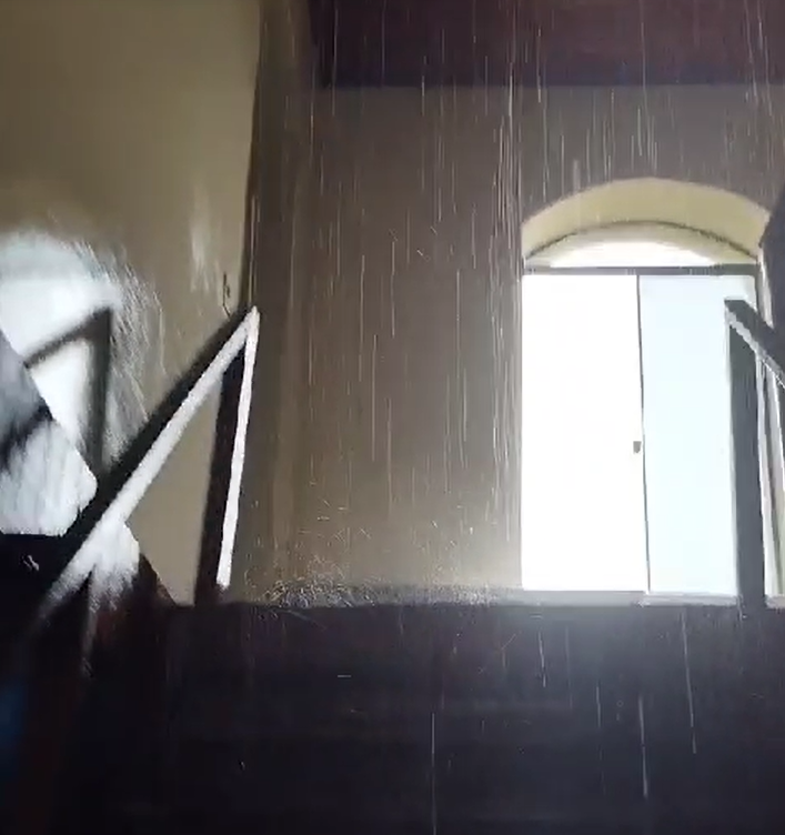 A força dos ventos fez com que várias telhas do prédio fossem arrancadas. Com a chuva, vários móveis, computadores e salas ficaram molhadas.