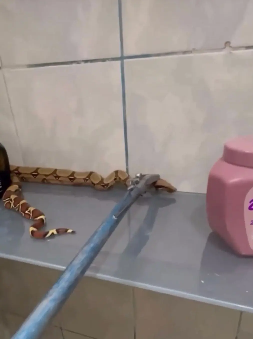 Uma família ficou assustada após se deparar com uma cobra da espécie jibóia no banheiro de casa, em um bairro de Rio Branco, no Acre. A equipe do Segundo Batalhão do Corpo de Bombeiros foi acionada e fez o resgate do animal.